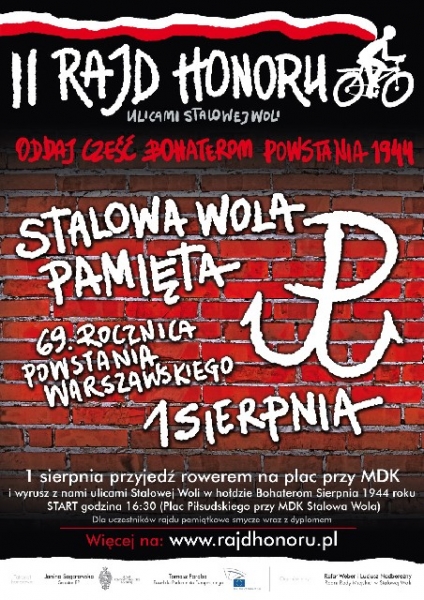 Z okazji 69 rocznicy wybuchu Powstania Warszawskiego w Stalowej Woli ulicami miasta przejedzie druga edycja rowerowego Rajdu Honoru, którego celem jest uczczenie Powstańców Warszawskich, mieszkańców cywilnych walczącej stolicy oraz wszystkich uczestników akcji Burza.