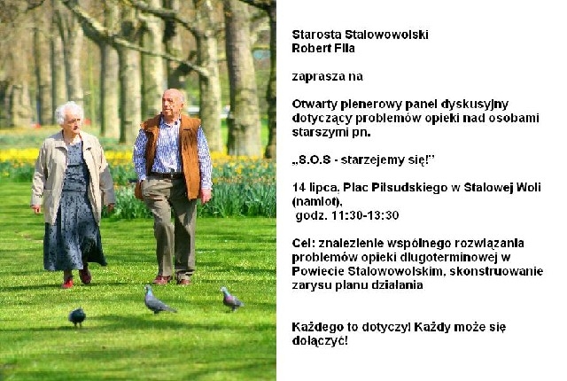Problem starzenia się społeczeństwa i opieki nad ludźmi starszymi będzie tematem stalowowolskiej debaty 'S.O.S starzejemy się. Będzie ona częścią imprezy prozdrowotnej 'Weekend dla zdrowia. Organizuje ją Starostwo Powiatowe w Stalowej woli w ramach realizowanego programu Promocji Zdrowia i Profilaktyki w Powiecie Stalowowolskim. A w ramach panelu 'S.O.S starzejemy się organizatorzy chcą przedyskutować z mieszańcami i instytucjami zajmującymi się opieką nad osobami starszymi jakie powinny być kierunki działania by ta opieka była jak najlepsza. Mówi starosta stalowowolski Robert Fila