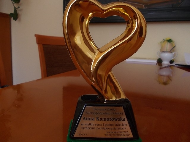 Grupa wychowanków Domu Dziecka w Skopaniu oraz uczniów tarnobrzeskich: Szkoły Podstawowej numer 3 oraz Gimnazjum numer 1 spotka się jutro w Warszawie z prezydentową Anną Komorowską. Pierwsza Dama RP otrzyma złote serce przyznane przez Stowarzyszenie 'Nasz Tarnobrzeg' w podziękowaniu 'za wielkie serce i pomoc dzieciom'. Statuetkę wręczy prezes Stowarzyszenia 'Nasz Tarnobrzeg', Kawaler Orderu Uśmiechu Stanisław Uziel.