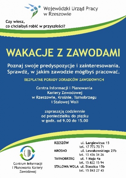 W ramach akcji 'Wakacje z Zawodami' młodzież oraz studenci mogą poznać wymagania rynku pracy. Przedsięwzięcie zorganizował Wojewódzki Urząd Pracy w Rzeszowie.