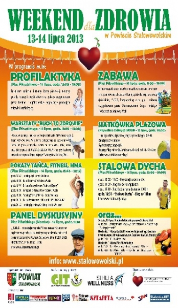 Ta dyskusja będzie się odbywać w specjalnym namiocie na placu Piłsudskiego w Stalowej Woli od godz 11.30. Imprezę 'Weekend dla zdrowia, która potrwa na placu przed MDK od godz. 11.00 do 19.00 będą degustacje zdrowej żywności oraz konkursy kulinarne. Zaś przy okazji imprezy odbędzie się po raz pierwszy bieg uliczny 'Stalowa Dycha.