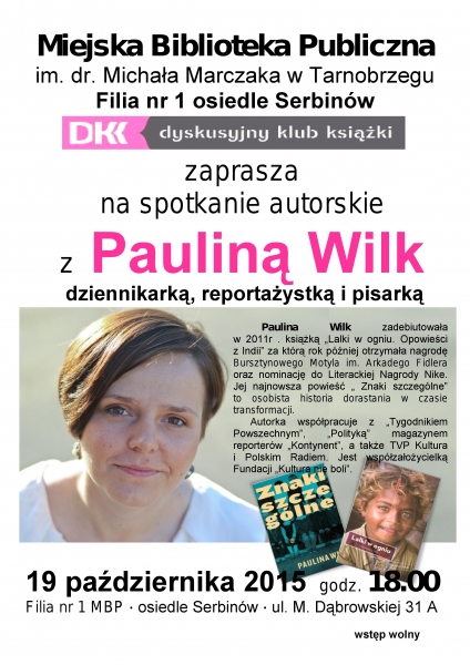 Tarnobrzeg. Spotkanie z dziennikarką, pisarką, reportażystką, Pauliną Wilk.