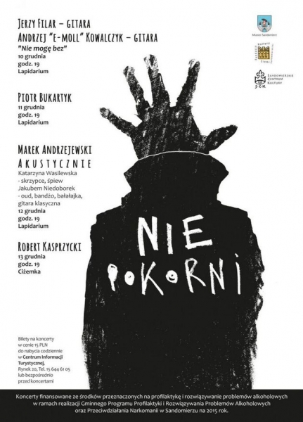 Koncerty finansowane ze środków przeznaczonych na profilaktykę i rozwiązywanie problemów alkoholowych w ramach realizacji Gminnego Programu Profilaktyki i Rozwiązywania Problemów Alkoholowych oraz Przeciwdziałania Narkomanii w Sandomierzu na 2015 rok.