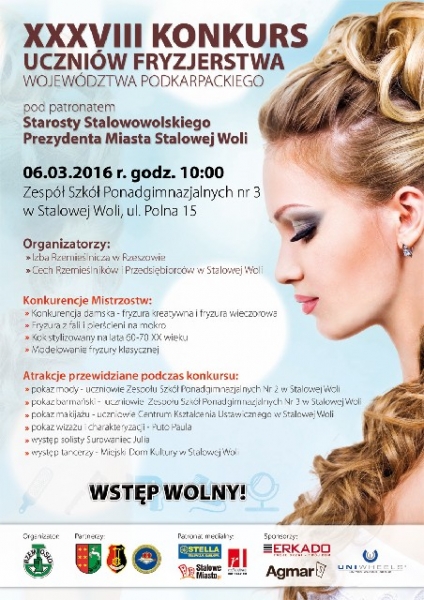 A dodatkowymi atrakcjami towarzyszącymi Konkursowi Uczniów Fryzjerstwa Województwa Podkarpackiego będą występy muzyczne i taneczne oraz pokazy wizażu, mody, makijażu, czy pokaz barmański. To wszystko już 6 marca od godz. 10.00 w Zespole Szkół Ponadgimnazjalnych nr 3 przy ul. Polnej w Stalowej Woli. Wstęp wolny. Patronat nad konkursem objęło Radio Leliwa.