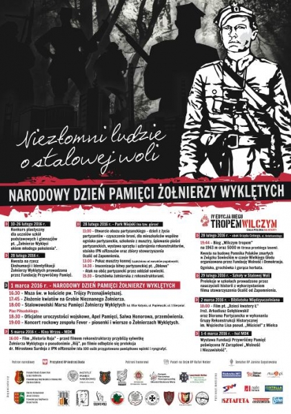Stalowa Wola zaprasza na obchody Narodowego Dnia Żołnierzy Wyklętych pod nazwą ‘Żołnierze Wyklęci – ludzie o stalowej woli’. Od niedzieli do środy obchodom będą towarzyszyć inscenizacje wydarzenia sportowe kulturalne, filmowe i wojskowe.