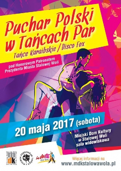 Tańce Karaibskie i Disco Fox królować będą w sobotę w Stalowej Woli. Wszystko za sprawą Pucharu Polski w Tańcach Par, do Hutniczego Grodu zjadą najlepsi tancerze z całej Polski. W sali widowiskowej Miejskiego Domu Kultury w Stalowej Woli odbędzie się Puchar Polski w Tańcach Par pod Honorowym Patronatem Prezydenta Miasta Stalowej Woli. Na scenie MDK będzie można podziwiać pokazy w rytmie salsy , merengue i bachaty. Organizatorem turnieju jest Klub Tańca La Volta z Miejskiego Domu Kultury w Stalowej Woli, który wspólnie z Polską Federacją Tańca realizuje to wydarzenie po raz drugi. Eliminacje w ramach Pucharu Polski ruszają już od godziny 10.00 w sobotę, a Gala Taneczna zaplanowana jest na godz.17.00. (Marta Górecka)