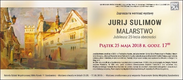 Jurij Sulimow nazywany jest malarzem zjednoczonej Europy. Tworzy we Francji, Anglii i Niemczech, wszędzie promując Sandomierz, w którym mieszka na stałe. Miasto to wciąż jest obecne w jego pracach.