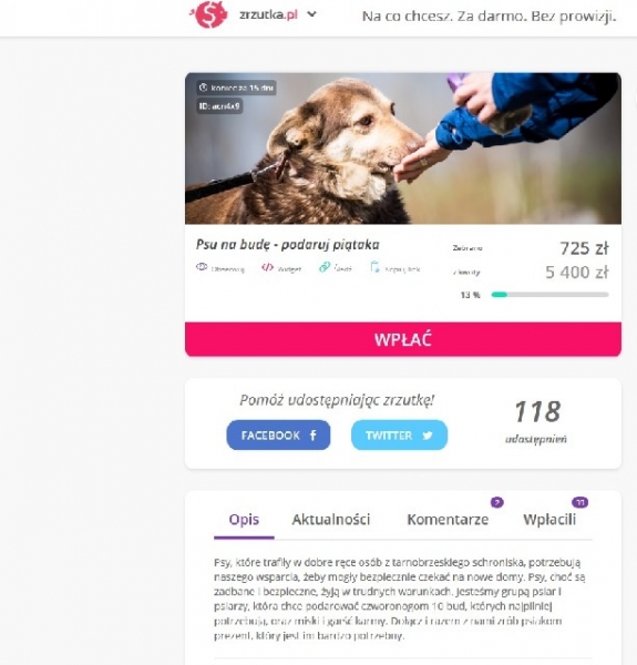 Zrodził się pomysł, aby zorganizować zbiórkę na stronie zrzutka.pl.