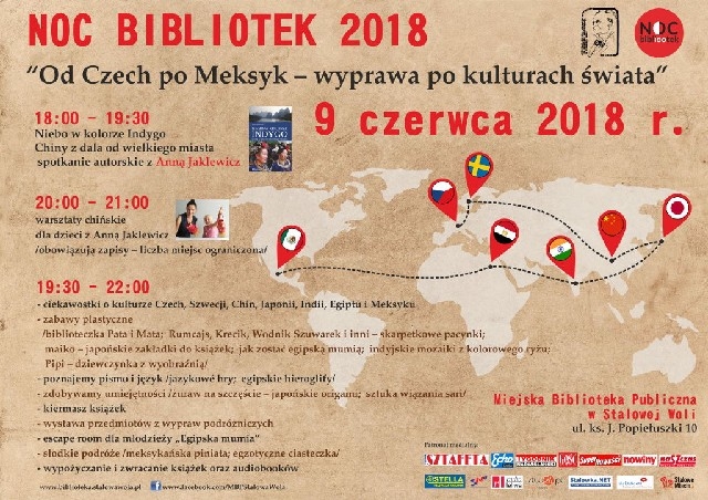 W tę sobotę Stalowej Woli odbędzie się Noc Bibliotek. Już od godziny 18.00 odwiedzających Miejską Bibliotekę Publiczną w Stalowej Woli czeka szereg atrakcji. Między innymi niezwykła podróż po kulturach świata. Będzie można zajrzeć do Chin, Japonii, Indii, Egiptu i Meksyku, ale też Czech, czy Szwecji. Sobotnią Noc Bibliotek w Stalowej Woli rozpocznie spotkanie z Anną Jaklewicz, która opowie o Niebie w kolorze Indygo czyli o Chinach widzianych inaczej. Mówi Beata Życzyńska z MBP w Stalowej Woli: