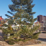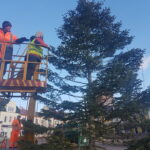 Jodła kaukaska ma ponad siedem i pół metra. Iglaka wsadzono rok temu na miejsce wyciętego z powodu choroby dęba. Rosnący przy niej krzew również został przystrojony.