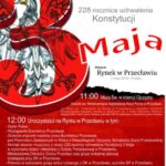Uroczystości gminne 228 rocznicy uchwalenia Konstytucji 3 Maja w Przecławiu rozpoczną się o godz. 11.00 mszą świętą w intencji Ojczyzny w kościele pw. Wniebowzięcia Najświętszej Maryi Panny w Przecławiu. Tuż po niej dalsze świętowanie będzie miało miejsce na przecławskim Rynku.