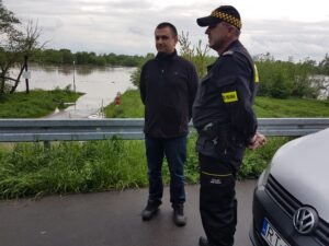 Sprawdzili stan obwałowań Tarnobrzega. Komendant Straży Miejskiej w Tarnobrzegu oraz pełniący obowiązki zastępcy naczelnika Wydziału Spraw Obywatelskich i Zarządzania Kryzysowego Urzędu Miasta Tarnobrzega przejechali wzdłuż wałów Trześniówki od strony osiedla Sobów oraz Wisły od miejscowości Koćmierzów do przeprawy promowej.