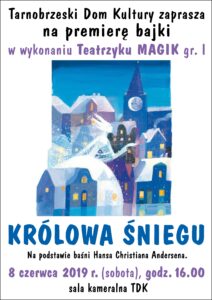 Spektakle „Królowa Śniegu” oraz „Alicja w Krainie Czarów” będzie można zobaczyć już w najbliższą sobotę, 8 czerwca w Tarnobrzeskim Domu Kultury. Przedstawienia zaprezentują dwie grupy działającego przy TDK Teatrzyku Dziecięcego MAGIK.