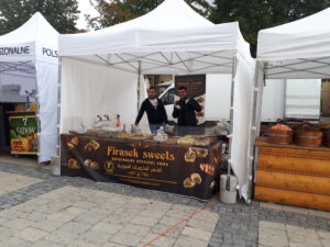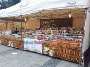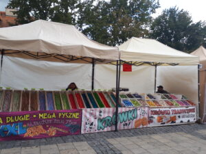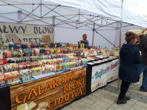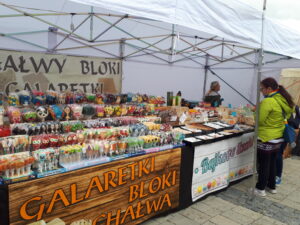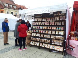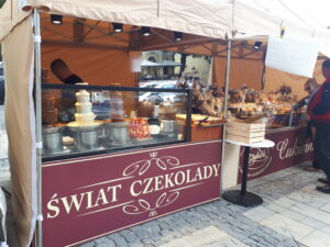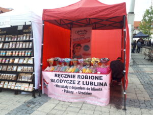 Rzemieślniczy twórcy czekoladowych tabliczek, pralin i trufli, producenci jadalnych figurek i słodkości oraz firmy cukiernicze prezentują się na sandomierskim rynku.