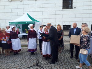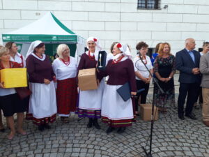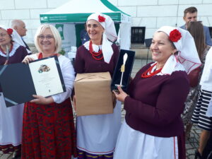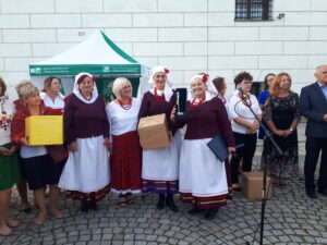 Główna nagroda – „Srebrna Chochla” – trafiła do gminy Samborzec. Członkinie Stowarzyszenia „Gorzyczany z sercem dla ludzi” przygotowały kluski kładzione z kurkami: