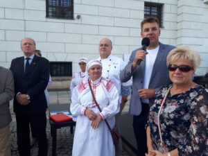 Burmistrz Sandomierza Marcin Marzec skosztował wielu przygotowanych potraw: