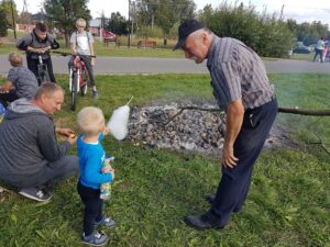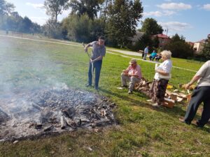 Zygmunt Maciąg, podczas imprezy był odpowiedzialny za to, żeby pieczonych ziemniaków dla nikogo nie zabrakło. Na placu rekreacyjnym w integralnej części osiedla stawił się już w sobotnie przedpołudnie. Przyszykował drwa, rozpalił ognisko i wsypał do niego kilka worków kartofli. Wykopki pan Zygmunt wspomina z sentymentem.