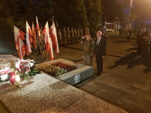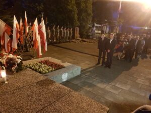 Obchody upamiętniające 80. rocznicę wybuchu II wojny światowej w Tarnobrzegu rozpoczęły się dziś o godzinie 4.45 na cmentarzu wojennym przy ulicy Targowej. W wydarzeniu uczestniczył prezydent miasta, Dariusz Bożek, przedstawiciele samorządu, kombatanci, harcerze, strzelcy, poczty sztandarowe, mieszkańcy.