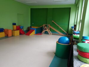 Dzieci mają do dyspozycji salę gimnastyczną. W poprzedniej siedzibie musiały się nią dzielić z uczniami „Dziesiątki”. W szkole jest także sala treningowa, w której podopieczni będą mogli uczyć się samoobsługi na przykład robienia kanapek, czy korzystania z łazienki.