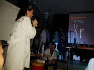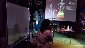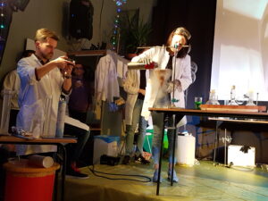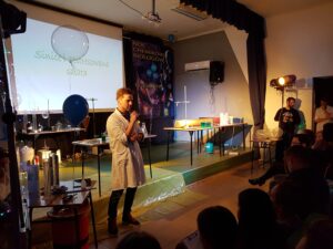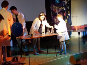 Wieczór prowadzili nauczyciele z Hetmana z czynnym udziałem uczniów. Ci, którzy przyszli na spotkanie mogli zobaczyć skroplony tlen, przyjrzeć się zamrażaniu piłeczek pingpongowych ciekłym azotem, spróbować zrobić bańkę z tlenku węgla czy pobawić się gorącym powietrzem.