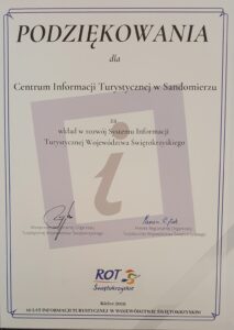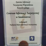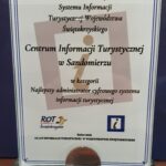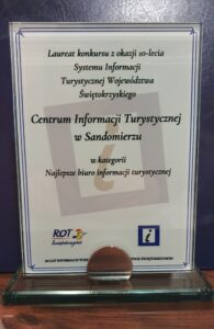 Zebrana Kapituła Konkursowa, składająca się z przedstawicieli Zarządu Regionalnej Organizacji Turystycznej Województwa Świętokrzyskiego, Izby Gospodarczej Hotelarstwa Polskiego oraz Forum IT przy Polskiej Organizacji Turystycznej doceniła sandomierską placówkę turystyczną, która została laureatem konkursów a także otrzymała podziękowanie za wkład w rozwój Systemu Informacji Turystycznej Województwa Świętokrzyskiego.