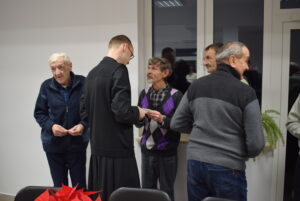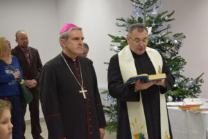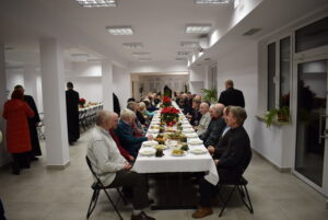 Spotkanie przy stole i życzenia poprzedziło uroczyste otwarcie żywej szopki, którą się opiekują mieszkańcy schroniska dla bezdomnych mężczyzn prowadzonego przez Caritas Diecezji Sandomierskiej.