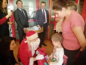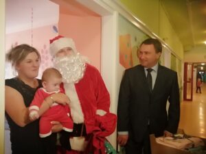 Pacjentów oddziału dziecięcego sandomierskiego szpitala odwiedził święty Mikołaj. Towarzyszyli mu pracownicy Starostwa Powiatowego. Mówi starosta sandomierski Marcin Piwnik: