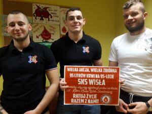 Sandomierscy Wiślacy zainaugurowali dziś akcję „95 litrów krwi na 95-lecie SKS Wisła Sandomierz”. Dziś rano pierwsi w tym roku kibice przyszli do punktu Centrum Krwiodawstwa i Krwiolecznictwa w Sandomierzu aby oddać krew.