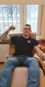 Wśród osób, którzy dziś rano przyszły oddać krew, znalazł się kibic „Wisły” Bartłomiej Gwizdowski: