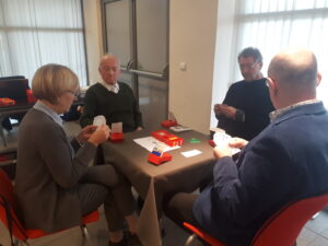 W zawodach wzięli udział także brydżyści z Sandomierza, którzy spotykają się dwa razy w tygodniu (we wtorki i czwartki) w Gminnym Ośrodku Kultury w Dwikozach.: