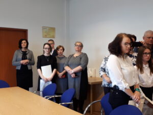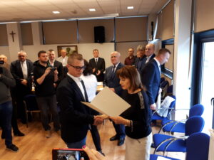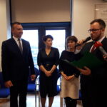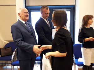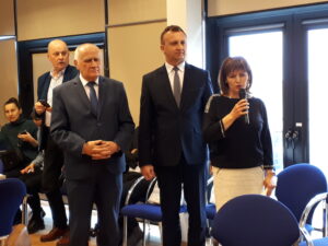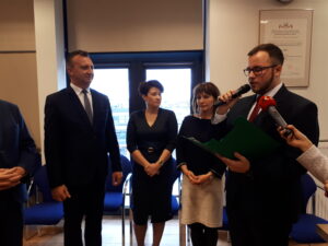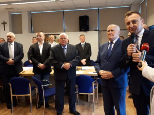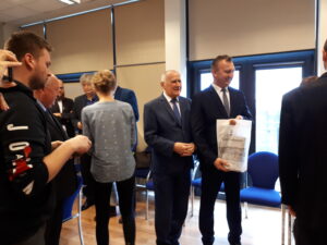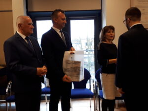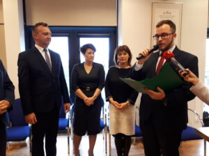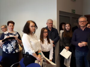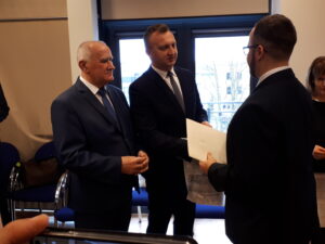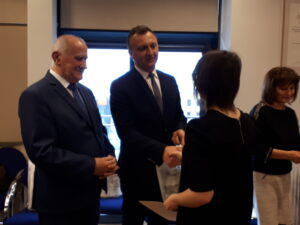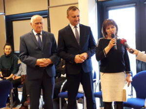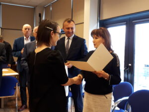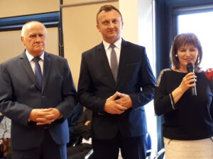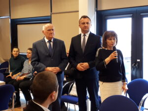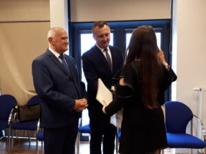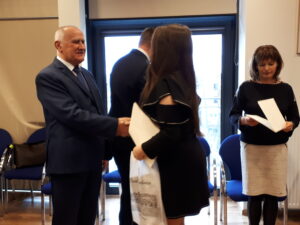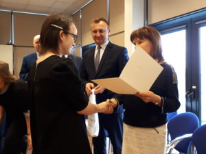 Wyróżnionym uczniom gratulowali: starosta sandomierski Marcin Piwnik oraz przewodniczący Rady Powiatu Tomasz Huk a w imieniu wyróżnionej młodzieży głos zabrał Wiktor Fudala z Liceum Ogólnokształcącego w Zespole Placówek Oświatowych w Koprzywnicy.