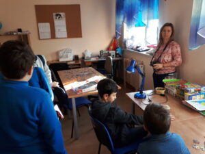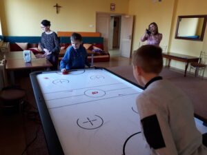 Uczniowie Katolickiej Szkoły Podstawowej spotkali się z podopiecznymi domu i wzięli udział we wspólnych zajęciach rekreacyjnych. Zwiedzili też funkcjonujące w ośrodku pracownie.