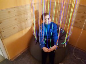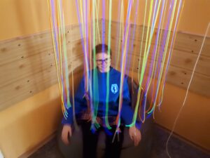 Jednym z elementów wyposażenia sali doświadczania świata jest prysznic świetlny: