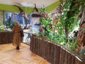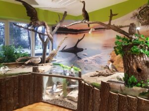 Ponad 400 metrów kwadratowych powierzchni użytkowej. W tym sala z dużymi akwariami, w których pływają między innymi ryby rzeczne takie jak jesiotr, węgorz czy pstrąg. Sala z dioramą czyli makietą przyrodniczą. Tu można stanąć oko w oko z wilczycą, bobrem, czy orłem i zachwycić się feerią barw różnych rodzajów łąk. W nowej siedzibie Centrum każdy odwiedzający zajrzy w głąb Wisły, starorzecza, a nawet puszczy i dotknie pomnika przyrody. Jest tu sala archeologiczna z kośćmi mamuta i kącik czytelniczy z wygodnymi fotelami. Na piętrze mieści się sala konferencyjna, która jest przeznaczona do organizowania przeróżnych spotkań o tematyce bliskiej naturze.
