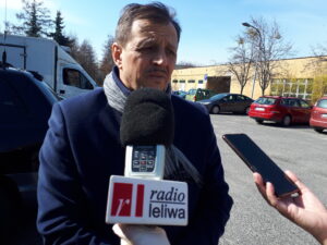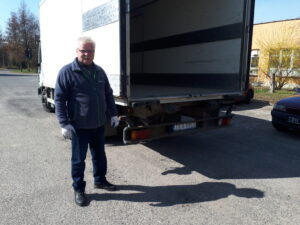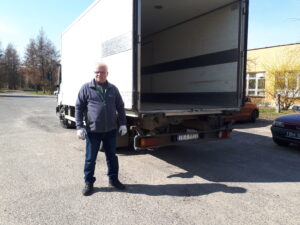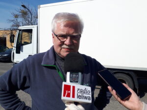 Witold Nogacki ze Spółdzielni Producentów Warzyw i Owoców 'Sielec’ przywiózł dwie palety jogurtów: