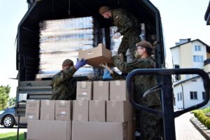 11 ton żywności przywieźli sandomierscy terytorialsi do Domu Pomocy Społecznej Zgromadzenia Sióstr Miłosierdzia w Kurozwękach.