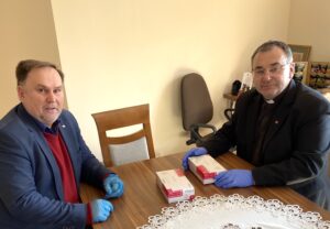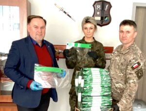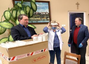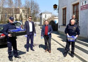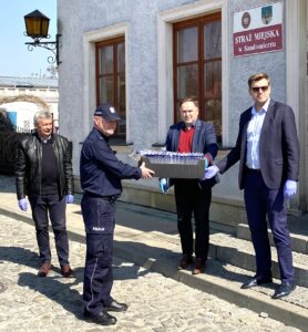 300 przyłbic ochronnych i 1000 sztuk rękawiczek przekazał poseł Marek Kwitek, rozdzielając je między Szpital Specjalistyczny Ducha Świętego w Sandomierzu, Komendę Powiatową Policji, Komendę Powiatową Państwowej Straży Pożarnej, sandomierskich terytorialsów, Straż Miejską i sandomierską Caritas.
