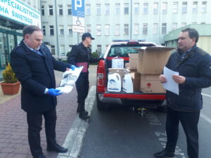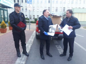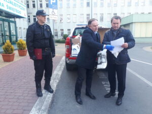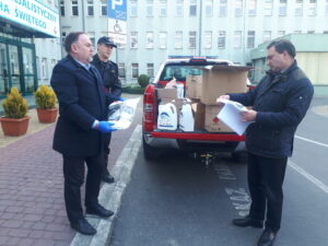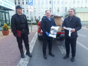 Szpital na walkę z koronawirusem otrzymał 5 tys. masek trójwarstwowych, 230 półmasek o klasie filtra FFP3 i FFP2 z zaworem, 100 litrów płynu dezynfekującego, rękawice lateksowe i ochronne chloroprenowe oraz gogle ochronne.