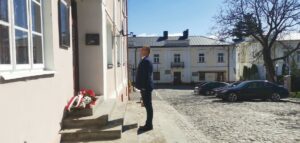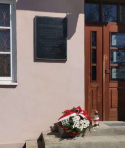 Symboliczne wiązanki oraz pamiątkowy znicz złożono przed tablicą poświęconą pamięci Piotra Nurowskiego. Tablica znajduje się na ścianie domu, w którym spędził dzieciństwo i młodość.
