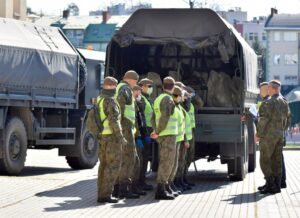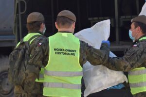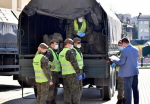 Do domów jednorodzinnych pakiety dostarczają strażacy ochotnicy oraz żołnierze Wojsk Obrony Terytorialnej, łącznie dwudziestoosobowa grupa.