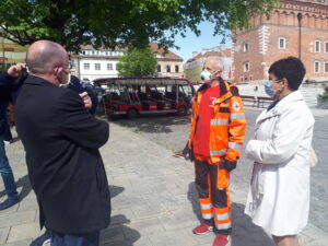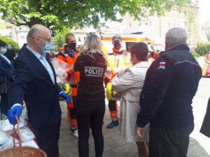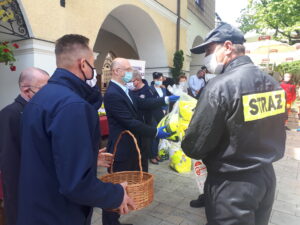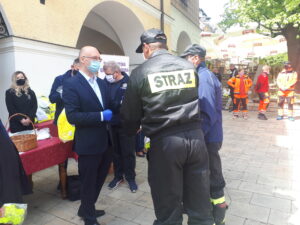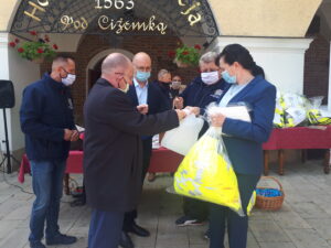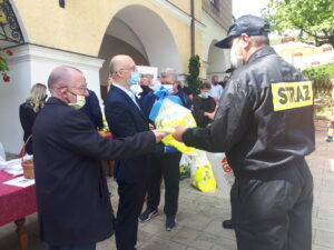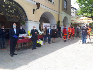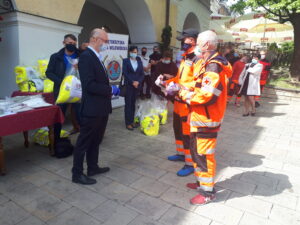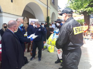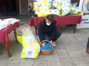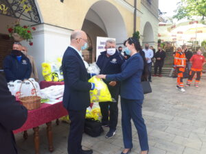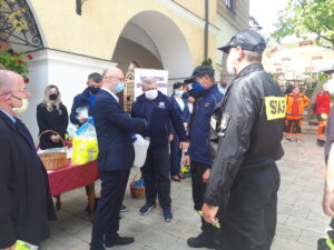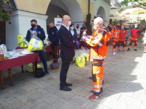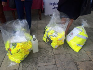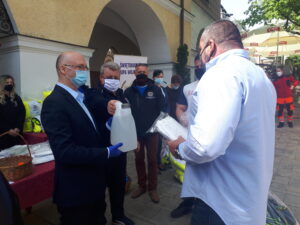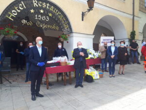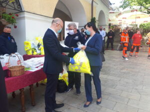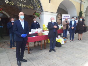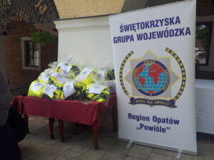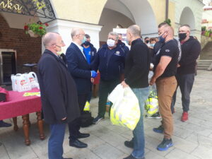 Półtora tysiąca maseczek, tysiąc trzysta kamizelek odblaskowych, trzysta rękawiczek jednorazowych oraz płyny do dezynfekcji przekazano dziś w Sandomierzu organizacjom, stowarzyszeniom i związkom zawodowym dzięki akcji Międzynarodowego Stowarzyszenia Policji IPA (International Police Association).