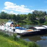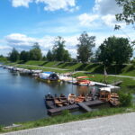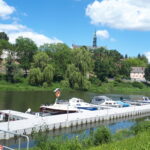 Kilkanaście pływających obiektów czeka na turystów w przystani wodnej w Sandomierzu.
