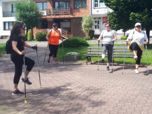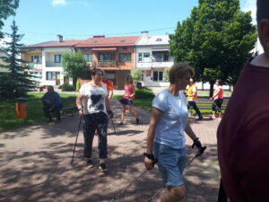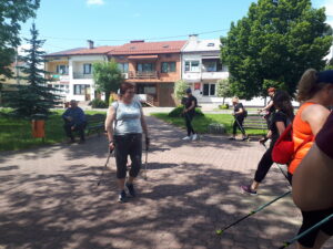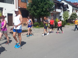 Agnieszka Chmielewska, która koordynuje działania sportowe „Chwałowianek” przekonuje o zaletach nordic walkingu: