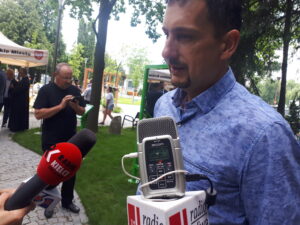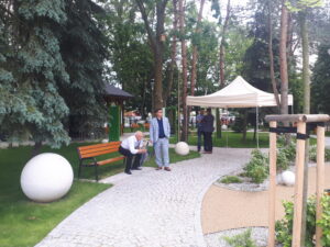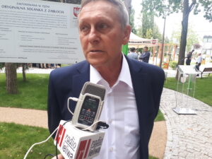Prezes zarządu spółdzielni Budownictwa Mieszkaniowego Sandomierz Andrzej Bolewski zwraca uwagę na prozdrowotny charakter parku, w którym znajduje się tężnia: