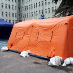 Zniszczony namiot po Szpitalem Specjalistycznym Ducha Św. w Sandomierzu został podmieniony na nowy.