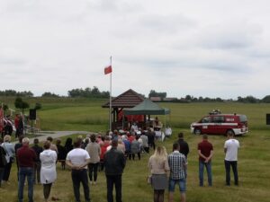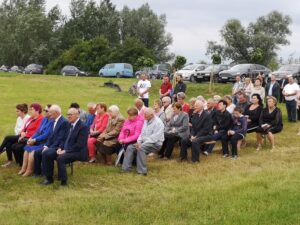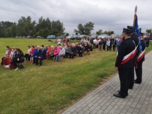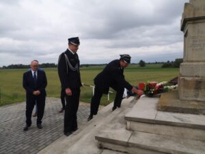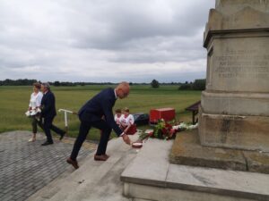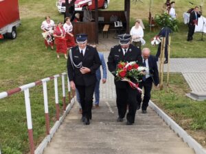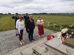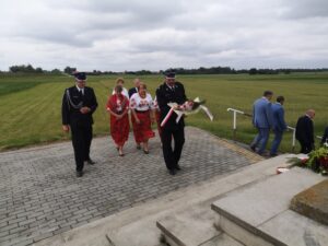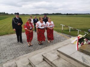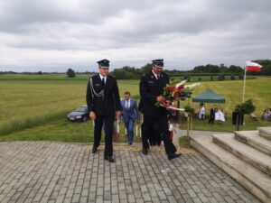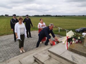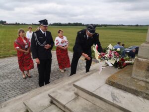 Po mszy, samorządowcy oraz przedstawiciele mieszkańców w asyście strażaków osp złożyli pod pomnikiem kwiaty oraz zapalili znicze. Kierownik Domu Kultury we Wrzawach Marek Bartoszek odczytał okolicznościową odezwę do zgromadzonych napisaną przez regionalistę Waldemara Prarata.