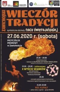 Z powodu aktualnej i według prognoz utrzymującej się jeszcze przez jakiś czas sytuacji hydrologicznej, zmianie ulegnie program sobotniego wydarzenia kulturalnego – ZAWICHOJSKI WIECZÓR TRADYCJI – symboliczne obchody Nocy Świętojańskiej. Nie będzie X jubileuszowego konkursu Wyścig Wianków. Będzie jednak konkurs na najpiękniejszy wianek świętojański. Wszystkie nagrody rzeczowe sfinansowane przez partnerów wydarzenia, zaplanowane dla uczestników odwołanego wyścigu, trafią w ręce wykonawców najpiękniejszych prac. Konkurs oraz pokaz tańca z ogniem pt. „NOC KUPAŁY” odbędą się zgodnie z pierwotnym planem godzinowym.