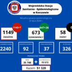 Badaniami laboratoryjnymi potwierdzono do tej pory na Podkarpaciu 1149 przypadków zakażenia koronawirusem SARS-CoV-2. 673 osoby wyzdrowiały. Odnotowano 58 zgonów.