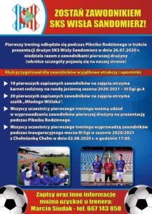 Aktualny skład drużyny piłkarzy SKS 'Wisła’ Sandomierz zostanie zaprezentowany kibicom. Najmłodsi miłosnicy piłki będą także mogli spróbować swoich sił na boisku. Mówi wiceprezes SKS Wisła Sandomierz Sławomir Gągorowski:
