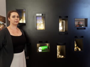 Anna Boroń z Muzeum Okręgowego prezentowała zwiedzającym eksponaty z zasobów Muzeum: